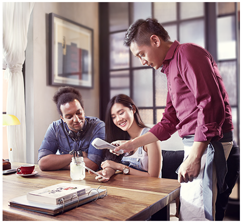 พร้อมให้บริหารด้วย ฟรี!! แอพพลิเคชั่นที่ช่วยให้คุณสามารถเปิดสมาร์ทโฟน หรือแท็บเล็ตของคุณให้เป็นระบบ POS เพื่อดำเนินธุรกิจของคุณได้ รับชำระผ่านบัตรเครดิต QR code (Prompt Pay), เงินสด และรับชำระเงินผ่านบัตรเครดิตชิพ และบัตร PIN บัตรเติมเงินและบัตรเติมเงินแบบมือถืออื่นๆ ด้วย SABUY SHOP POS Device